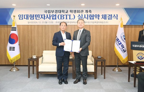 국립부경대는 12월 23일 오후 대학본부 3층 총장실에서 백경미래창조(주)(대표 박재석)와 학생회관 개축 사업 실시협약을 체결했다.