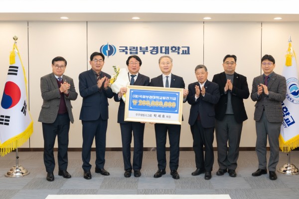 국립부경대학교(총장 배상훈)는 지난 2월 5일(목) 오후 대학본부 접견실에서 박세호 우주씰링스그룹 회장 발전기금 전달식을 개최했다.