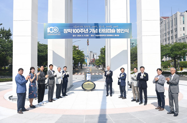 이어 국립부경대는 창학 100주년을 기념하기 위한 타임캡슐 봉인식을 하고, 웅비탑 중앙 바닥에 조성한 공간에 타임캡슐을 봉인했다.