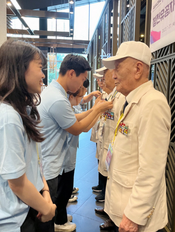 봉사단 학생들은 이날 기념식 지원활동에 앞서 「참전용사 등 전적지 순례*」 행사에 참여해 참전유공자들과 함께 식사하고, 직접 유공 배지를 달아주며 감사 인사를 전하는 등 보훈 활동을 펼쳤다.