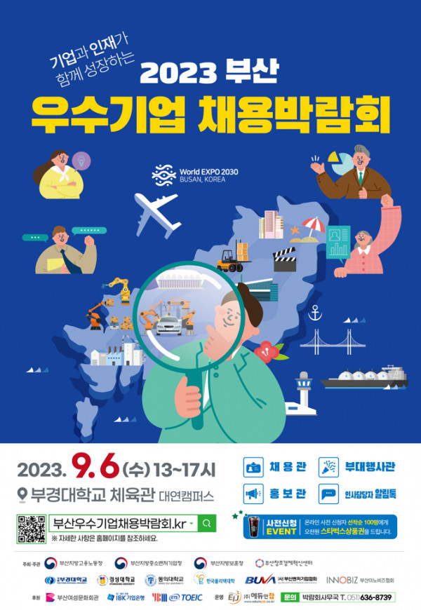 ‘2023 부산 우수기업 채용박람회’가 오는 6일 오후 국립부경대학교 대연캠퍼스 체육관에서 열린다.