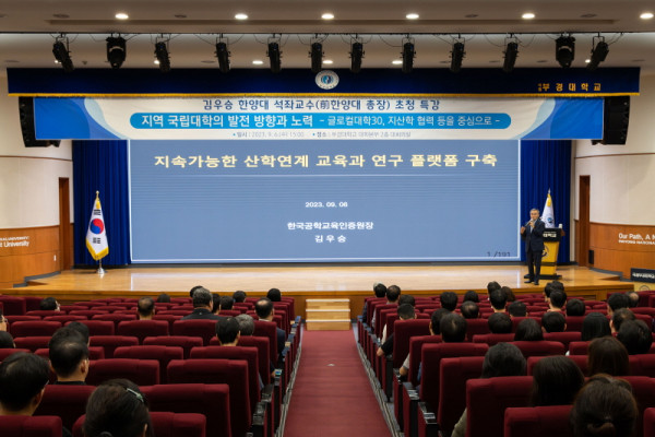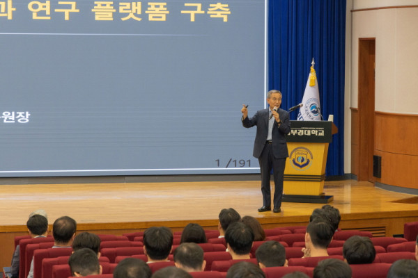 김우승 원장은 이날 ‘지역국립대학의 발전 방향과 노력: 지속 가능한 산학연계 교육과 연구 플랫폼 구축’을 주제로 부경대 교수, 직원 등 구성원을 대상으로 특강을 펼쳤다.