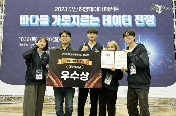 국립부경대학교(총장 장영수) 학생들이 ‘2023 부산 해양데이터 해커톤’ 경진대회에서 우수상과 장려상을 수상하며 활약했다.
