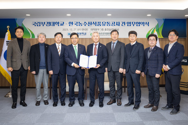 국립부경대학교(총장 장영수)와 한국농수산식품유통공사(사장 김춘진)는 27일 오전 대학본부 3층 총장실에서 업무협약을 체결했다.