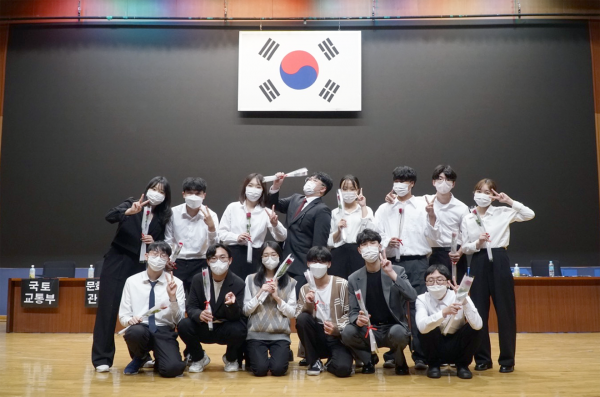 ※ 붙임사진: 부경대 행정복지학부 모의국무회의 준비위원회 학생들 단체 기념촬영 장면.