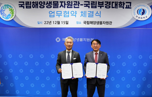 국립부경대학교(총장 장영수)와 국립해양생물자원관(관장 최완현)은 15일 국립해양생물자원관 2층 중회의실에서 업무협약을 체결했다.