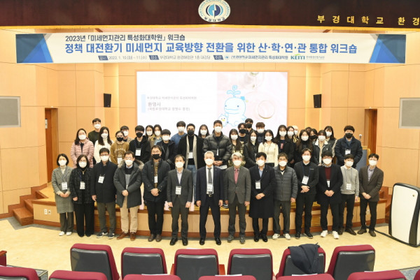 국립부경대학교(총장 장영수)는 10일 오후 환경해양관 1층 대강당에서 2023년도 미세먼지관리 특성화대학원 워크숍인 ‘정책 대전환기 미세먼지 교육방향 전환을 위한 산‧학‧연‧관 통합 워크숍’을 개최했다.