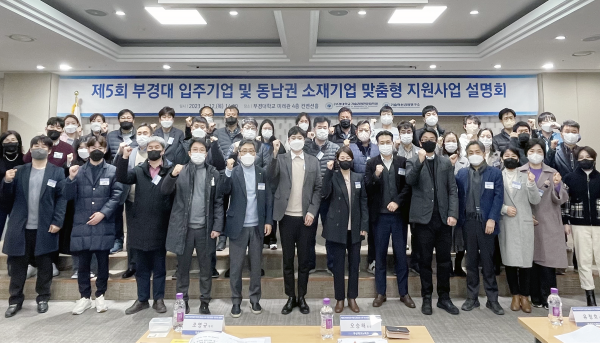 ※ 붙임: 부경대가 올해 초 개최한 입주기업 및 동남권 소재기업 맞춤형 지원사업 설명회 기념촬영 사진.