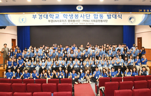 이날 학생평화봉사단인 ‘부경UN서포터즈’ 36명과 지역봉사단인 ‘PKNU사회공헌봉사단’ 73명 등 총 109명의 봉사단 학생이 발대식을 하고 활동을 시작했다.