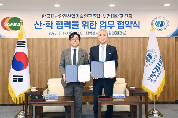 국립부경대학교(총장 장영수)와 한국재난안전산업기술연구조합(이사장 노희종)은 17일 오후 부경대 대학본부 3층 총장실에서 산학협동 협약을 체결했다.