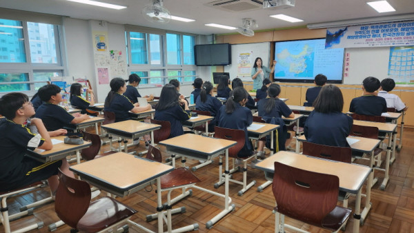 국립부경대학교 인문한국플러스(HK+)사업단(단장 김창경‧중국학과 교수)은 5일 대학 인근 분포초등학교와 부흥중학교를 직접 찾아 특별 강연을 제공하는 ‘2023 청소년 해역인문학 강연’을 개최했다.