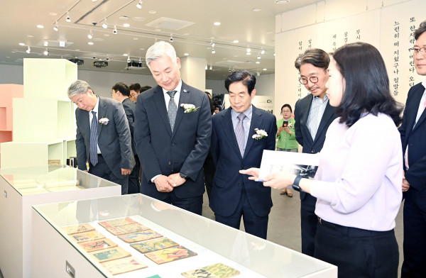 ※ 붙임사진: 1. 향파 이주홍 특별전 개관행사 테이프 커팅식 2. 향파 이주홍 특별전 개관행사 참석자들이 전시회를 둘러보고 있다.