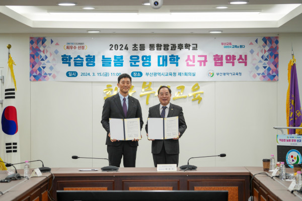 국립부경대는 지난 15일 부산광역시교육청과 ‘2024 초등 통합방과후학교(지역 연계 학습형늘봄프로그램 운영 대학)’ 협약을 체결했다.