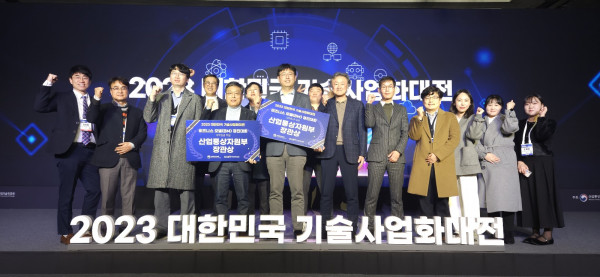 ※ 붙임사진: 대한민국 기술사업화대전 BM경진대회 장관상 수상팀이 기념촬영하고 있다.