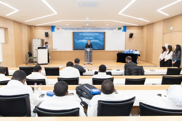 이날 연수에 참가한 탄자니아 잔지바르 청색경제수산부 차관보 1명을 포함해 청색경제수산부, 잔지바르 해양배양장, 잔지바르 수산해양자원연구소 소속의 양식기술자 등 총 15명(고위직 1명, 실무직 14명)이 과정을 모두 마치고 수료증을 받았다.