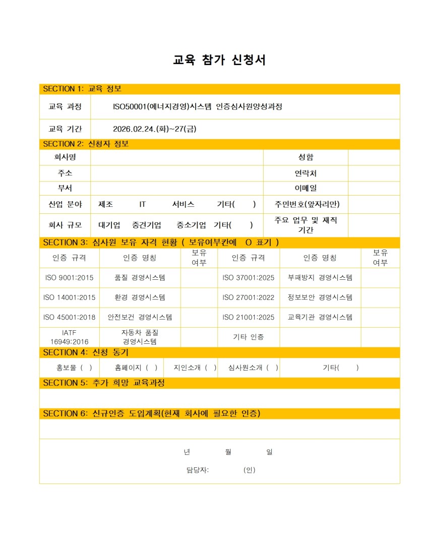 - 참가신청서-ISO50001 심사원양성과정.hwp (48.5K) 0회 다운로드 | DATE : 2026-02-11 15:11:28